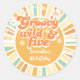 Groovy wild and five retro sun kids birthday classic round sticker