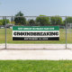 Groundbreaking ceremony banner for buildings or developments. Customise all text. Customise colours if you like: the middle strip is the "background" colour and the top and bottom shapes can be changed also. Attention getting banner for your ground breaking event.