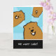 Three goofy smiling groundhogs looking for birthday cake on a fun blue sunburst background. Perfect birthday card for the person who is celebrating a birthday on Groundhog Day.