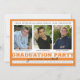 Modern orange, black and white graduation party invitation for a combined group party of two or three friends or siblings with photos (one of each of three friends or, for two people, choose a photo of each and one with both of them in the centre). Includes an editable title you can add their school and or class year. Party invitation details are on the front and there's a place to optionally add details about each graduate on the back (delete the sample text if not desired or use the space for additional party details). This invitation is also available as a digital file download for printing locally or sharing digitally online. ASSISTANCE: For help with design modification or personalisation, colour change, resizing, transferring the design to another product or if you would like coordinating items, contact the designer BEFORE ORDERING via the Zazzle Chat MESSAGE tab below or email makeitaboutyoustore@gmail.com.