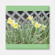 A Square Magnet with a Picture of a group of Daffodils and green back ground.