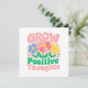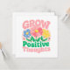 Nurture a brighter mindset with this uplifting "Grow Positive Thoughts" greeting card featuring whimsical, colourful flowers and motivational lettering. This cheerful artwork encourages mindfulness, self-love, and personal growth, making it a perfect gift or personal reminder to stay positive and spread good vibes. This floral-inspired design brings beauty and encouragement to everyday life.