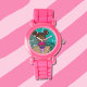 A cute pink watch for kids with an extremely happy African American girl (her cat by her side), because her plant is growing . Personalise the watch with the name of the child. Pick different colour or style if desired .