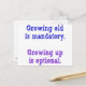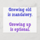 Your body might be over the hill, but your spirit is still young! A great birthday or retirement gift. Reads "Growing old is mandatory. Growing up is optional."