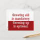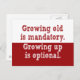Your body might be over the hill, but your spirit is still young! A great birthday or retirement gift. Reads "Growing old is mandatory. Growing up is optional."