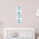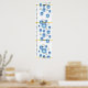 Measure child's growth against rising blue and white bubbles. Bubbles look three dimensional. Yellow lines at 2 feet (measure from floor), 3, 4, and 5 feet. Inches marked between lines as 1,2,3,4,5,6,7,8,9,0,1,2 (on yellow line).
