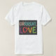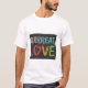 The t-shirt features the phrase "Grrrreat Love" in a playful multicolor design. Each letter bursts with a different vibrant hue, creating a sense of fun and energy. The "Rs" are the stars of the show, with a bold, slightly jagged font that emphasizes the playful growl in "Grrrreat."