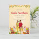This DIY Digital Housewarming invites or Indian pooja invite, a fusion invite in traditional elegance, is complemented with florals & leaves, perfect for your Indian Grihapravesh invite celebrations.