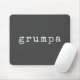 A mouse pad just for Grumpa! Personalized using a retro typewriter font in white on a black background. Great gag gift for grumpy grandpa.