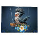 Grumpy Bird on Monday. Funny stylised bird that looks so grim that even the sun doesn't dare smile at it! Its plumage is a chaotic mix of blue, white, and grey, as if it had thrown itself into a pot of paint when it got up. Next to it is a cup of coffee with the witty saying "It's Monday, not my day." This cup might as well have a sign saying: "Help! I really need a vacation!” It’s clear, with a cheerful colour palette and blooming flowers, even the grumpiest bird will be the star of Monday
