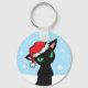 Grumpy Black Cat wearing Santa Hat Key Ring