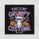 For the holiday skeptic! A cute grumpy cat wearing a Santa hat surrounded by pumpkins and bats. The ultimate "low effort" festive costume design.