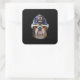 Grumpy English Bulldog Wearing Firefighter Helmet Square Sticker