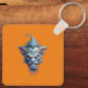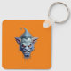 A grumpy looking goblin, frontside view, created with AI art, with the word "Boo" on the front of the keychain. You can easily replace this word by a word of your choice. You can as well change the colour of the background.