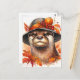 This postcard features a grumpy-looking otter wearing a hat adorned with fall season elements.