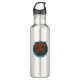A water bottle featuring a cartoon of a rust red octopus with a mean frown, curling tentacles spread in all directions and fleshy coloured suckers exposed. A shoal of fish stream past in the background. For fans of octopuses and cephalopods with attitude. Personalise with a simple change to the editable text which curves around the image. Customise it to change the colour of the ocean green background circle which surrounds and shows through the semi-transparent inner background.