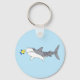 Keychain with a grumpy tiger shark and a cute yellow fish with blue fins. The design is customisable.