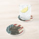 On this sandstone coaster, a watercolor portrait of a beautiful black Labrador Retriever Dog is placed against a grunge background of the USA flag. Perfect for any patriot who loves a Lab!