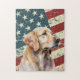 Grunge American Flag Golden Retriever Dog Jigsaw Puzzle