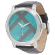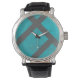 Grunge Aqua Blue and Grey Minimalist Pattern Watch