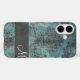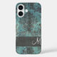 grunge damask Pattern with Monogram teal Case-Mate iPhone Case