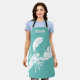 Cool teal blue apron printed with a grunged white lobster. Personalise by adding your own name or other text.