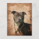 Brindle with white American Pit Bull Terrier on a grungy parchment like background dog lovers postcard