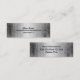 A distressed realistic metal look surface in stainless steel grunge chrome aluminium look is a bold, unique, professional looking business card. Easily customise with your own information. A handsome and strong looking card, especially great for industrial, construction and building occupations. More information can be put on the back as well onto the same metal background. A strong business card that stands out from the rest. Printed on paper, not actual metal. Shown is the smaller profile size card. Other sizes are available.