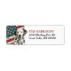 The left side of these return address labels feature a watercolor portrait of a beautiful Dalmatian dog placed against a grunge background of the USA flag. Your custom text is in matching red and black at the right.