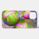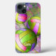 Girls' volleyball iPhone 6/6s tough extreme case with bright multicolor volleyballs with hot pink, purple, lime and yellow panels on an abstract background and customisable name - by katz_d_zynes