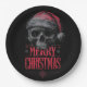 Grungy Gothic Skull Wearing a Distressed Santa Hat Paper Plate