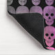A punk Goth grungy skull pattern in cool multi colours of pink, purple, and green on a mouse pad.