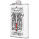 Well made flask, a little better than I had expected. Flask came in clear plastic box which gave it a nice presentation when I took it out of the zazzle packaging. Image is not printed on flask but on sticker. Don't know how this will hold up I haven't used it yet. This would make a Great gift! I plan to purchase more for friends! Cheers. I thought a little brighter than computer. Very crisp, writing wasn't