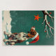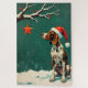 This stylish vintage silkscreen print captures the focus of the German Shorthaired Pointer in its classic stance, wearing a Santa hat and pointing intently at a Christmas star. A crisp, mid-century modern holiday design for GSP fans.