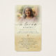This personalized funeral prayer card features a cherished photo paired with the sacred image of Our Lady of Guadalupe and the traditional prayer “Hail Mary” (Ave Maria), offering a meaningful expression of faith and remembrance. One side displays the elegant sentiment “In Loving Memory” below a softly faded portrait, a gold cross an the editable "Hail Mary" prayer, creating a timeless keepsake rooted in Catholic tradition. Warm vintage tones, floral detailing and a reverent gold cross accent bring depth and symbolism to the design, honoring devotion, comfort and eternal hope. These memorial sympathy prayer cards are ideal for funerals, memorial services, visitations, wakes or Celebration of Life gatherings, providing family and friends with a prayerful remembrance to hold close. Small and portable size of 3.5x2" (wallet-sized). Personalization makes these custom cards unique.