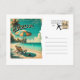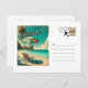 Discover the timeless beauty of Guadeloupe with this retro-style postcard. A paradisiacal beach awaits you, adorned with majestic palm trees, a striped umbrella inviting relaxation, and lounge chairs on immaculate white sand. The clear turquoise water and picturesque pier complete this perfect island scene. Ideal for sharing your travel memories or as wall decor for Caribbean lovers.