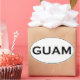 This Euro style oval sticker includes the letters GUAM in bold caps text. Guam is a U.S. territory in the Mariana Islands archipelago of South Pacific.