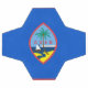 Flag of Guam. The flag of the United States territory of Guam was adopted on February 9, 1948. The territorial flag is dark blue with a narrow red border on all sides (border was a later addition). In the centre of the flag is the coat of arms; an almond shaped emblem, which depicts a proa sailing in Agana Bay near Hagåtña, and GUAM coloured in red letters. The shape of the emblem recalls the slingshot stones used by the islanders' ancestors. The landform at the back depicts the Punta-Dos Amantes cliff on Guam. See more of my Guam flag products here . See my full world flags store here .
