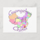 Guangzhou of Guangdong province on a colourful map of China includes the Chinese symbols for 'Guangzhou' and its location is marked on the map with a heart and flag. A beautiful, unique China adoption gift! Customise it with a name or photo too! Designed by Hendrika of RedThreadMaps.com