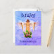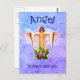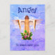 Lovely guardian angel with pretty purple violets at her feet on a pale blue background inspirational postcard. This image is available on many products in my store. Please visit Smilin' Eyes Treasures to see more flower and nature photography and digital art cards and gifts.