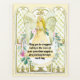 A beautiful illustration of a long blonde haired white guardian angel wearing a pretty peach orange dress is standing in front of a beautiful faux gold glowing church window and above a round eucalyptus and pink rose floral wreath framed by a soft orange background. The words, May you be wrapped safely in the arms of your guardian angel as you journey through each day, appears in the middle of the wreath. Ideal for all catholic religious events (christenings, baptisms, first holy communions) or for your mother, sister, best friend, grandmother or daughter on their birthday or just as a spoil to show them how much you care.