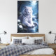 In the quiet blue of a moonlit night, the white tiger moves forward without fear.