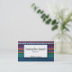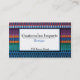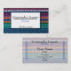 A business card for an import gift shop or store. This card features a traditional Guatemalan weave as the background. The textile is woven in multi colours and is very intricate.