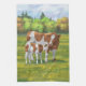 Guernsey Cow & Cute Calf in Summer Pasture Tea Towel