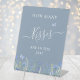 Guess How Many Kisses Blue Bridal Shower Pedestal Sign
