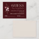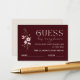 Make your bridal shower extra fun with this elegant “Guess How Many Kisses” game card. Designed with a rich burgundy background, delicate blush florals, and refined typography, this card is perfect for candy jar or kiss-count guessing games. Featuring clear instructions with name and guess lines, it’s ideal as a flat card or enclosure. Fully customizable to match your bridal shower theme and part of the Bride in Bloom floral collection.
