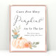 Cute game sign for your baby shower with "Guess How Many Pumpkins" written simple grey typography and a stylish script with a heart swash and a watercolor of a pastel orange pumpkin, florals and greenery. Place a jar filled with candy pumpkins underneath and ask your guests to guess how many are in the jar. The winner will be the guest who gets closest without going over. Matching guess cards are available in our Orange Pumpkin Floral Watercolor Baby Shower Collection.