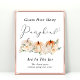 Cute game sign for your baby shower with "Guess How Many Pumpkins" written simple typography and a stylish script with a heart swash and watercolors of orange and white pumpkins and florals. Place a jar filled with candy pumpkins underneath and ask your guests to guess how many are in the jar. The winner will be the guest who gets closest without going over. Matching guess cards are available in our Pumpkin Floral Watercolor Autumn Baby Shower Collection.