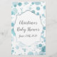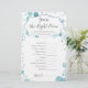 This baby shower game card features a script modern font on a blue dots background, perfect for a baby boy!