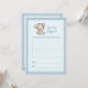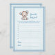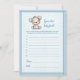 Adorable brown and blue baby bear for a boy's baby shower. Guess That Baby Food baby shower game. Blue blanket with blue stitched edge border for background. Templates provided on back.